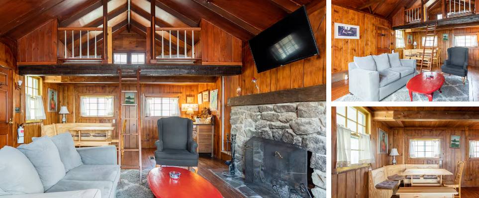 Η εξοχική κατοικία διαθέτει όμορφα διακοσμημένο εσωτερικό με ρουστίκ ατμόσφαιρα, εμφανή ξύλινα δοκάρια και έναν πολυέλαιο αντίκα. Υπάρχει ενιαίος χώρος καθιστικού και τραπεζαρίας, ο οποίος προσφέρει Smart TV, εσωτερικό τζάκι και τραπέζι τεσσάρων ατόμων. Τα παράθυρα από το δάπεδο μέχρι την οροφή αφήνουν έναν τόνο φυσικού φωτός, ενώ η ενοικίαση είναι επίσης εξοπλισμένη με πλήρες μπάνιο, μικρή κουζίνα και πλυντήριο και στεγνωτήριο. Το υπνοδωμάτιο είναι επιπλωμένο με ένα queen-size κρεβάτι με στρώμα αφρού μνήμης και ο καναπές queen-size στο σαλόνι προσφέρει ένα άλλο άνετο μέρος για ύπνο.